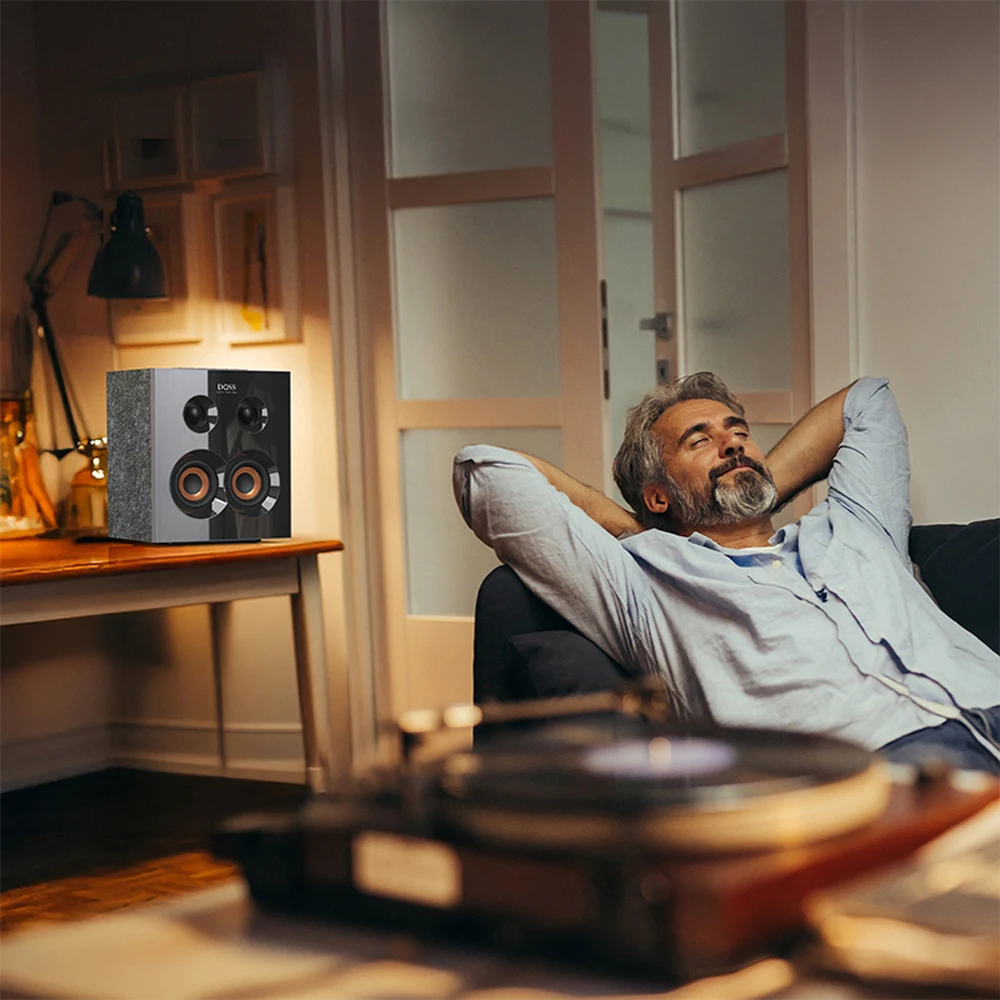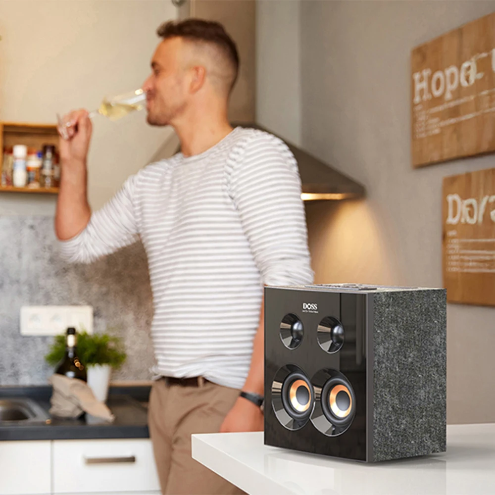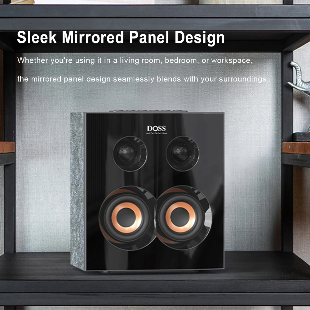 The DOSS SoundBox H300 is a Bookshelf Bluetooth speaker. Powerful 90-watt stereo sound, equipped with an additional bass button. Just press this button gently to enjoy greater volume and more bass. The sleek, modern design, featuring a stunning mirror finish, effortlessly complements any contemporary decor.